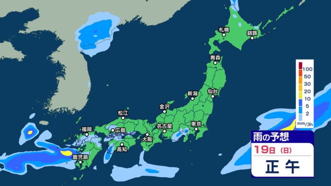 関東甲信~九州南部など太平洋側では20日にかけて雨の時間帯も 20日~21日にかけては日本海側でも雨に 北海道では雪?【3時間ごとの雨シミュレーション・19日正午更新】