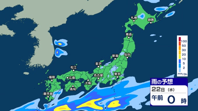 太平洋側に前線停滞で雷を伴った激しい雨が降る所も 今週は気温が下がり秋が深まる?【今週の天気予報・3時間ごとの雨シミュレーション・19日午後9時30分更新】