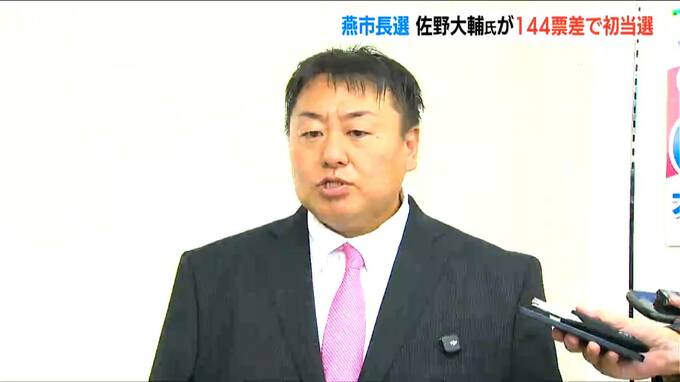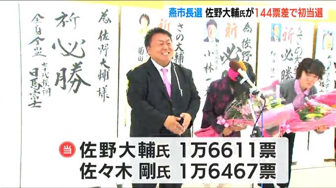 現職の辞職に伴う新潟県の燕市長選が19日に行われ、前・燕市議会議員の佐野大輔さん(41)が新人同士の一騎打ちを144票差で制しました。