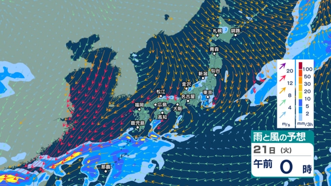 2. 前線停滞で雷を伴う非常に激しい雨の所も 台風24号からの暖かく湿った空気の影響で沖縄でも激しい雨の恐れ【台風進路図と3時間ごとの雨風シミュレーション・20日午後0時50分更新】