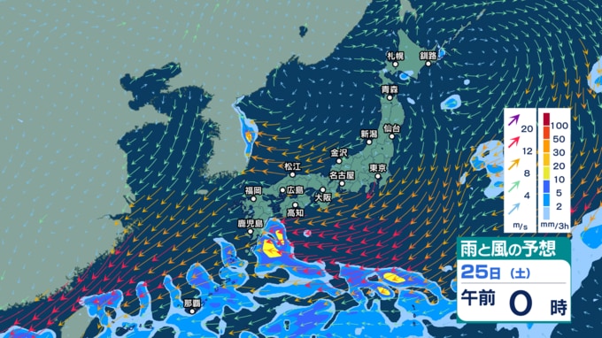 前線停滞で雷を伴う非常に激しい雨の所も 台風24号からの暖かく湿った空気の影響で沖縄でも激しい雨の恐れ【台風進路図と3時間ごとの雨風シミュレーション・20日午後0時50分更新】 2025年10月20日(月) 12:50