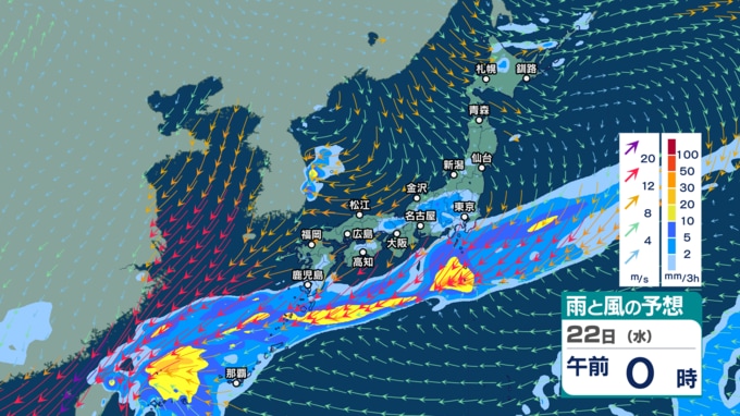 前線停滞で西日本~東日本や南西諸島で大気の状態が非常に不安定 伊豆諸島では猛烈な雨の恐れ “線状降水帯”発生の恐れも【3時間ごとの雨風シミュレーション・21日正午更新】