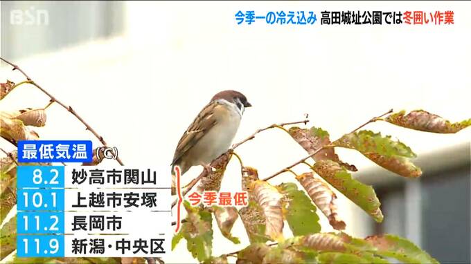 上越市では高田城址公園の『冬囲い作業』が始まり、21日朝の新潟市中央区では、通勤通学の装いからも秋の深まりが感じられます。