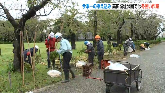 上越市の高田城址公園では冬を迎える準備が始まりました。
