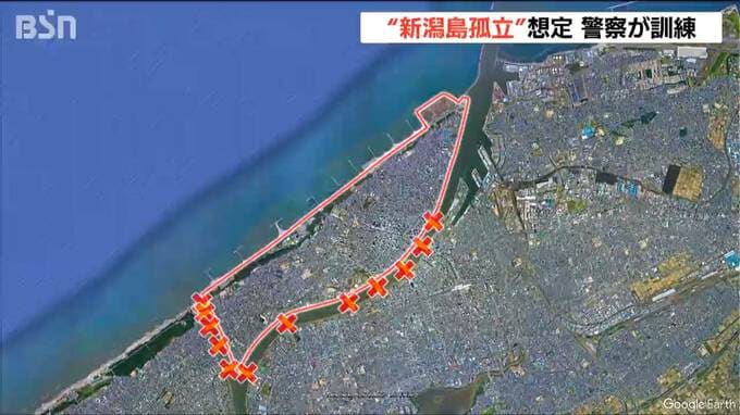 「新潟島 孤立」全ての橋が倒壊した想定で機動隊ら115人が災害警備訓練 警備艇などで警察官移送 新潟市中央区 2025年10月22日(水) 11:58 国内 新潟市中心部で“新潟島”と呼ばれる区域が地震で孤立したことなどを想定した訓練が21日に行なわれました。地震や水害の発生を想定したこの訓練には、関東管区機動隊の隊員らおよそ115人が参加しました。今回の訓…