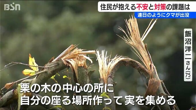 付近にはクマのものとみられる痕跡があり、およそ100メートル離れた栗の木にもクマの痕跡が…。