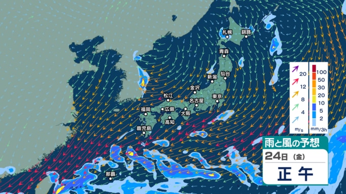 土日は雨の所が多くなり東日本や北日本で雷を伴う“バケツをひっくり返したような”雨も? 週明け27~28日頃は北日本で大荒れや大しけの恐れ【3時間ごとの雨風シミュレーション・24日正午更新】 | 新潟のニュース・天気|BSN NEWS|BSN新潟放送