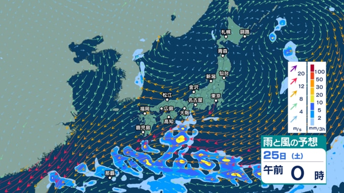 土日は雨の所が多くなり東日本や北日本で雷を伴う“バケツをひっくり返したような”雨も? 週明け27~28日頃は北日本で大荒れや大しけの恐れ【3時間ごとの雨風シミュレーション・24日正午更新】