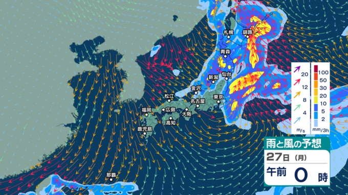3. 土日は雨の所が多くなり東日本や北日本で雷を伴う“バケツをひっくり返したような”雨も? 週明け27~28日頃は北日本で大荒れや大しけの恐れ【3時間ごとの雨風シミュレーション・24日正午更新】