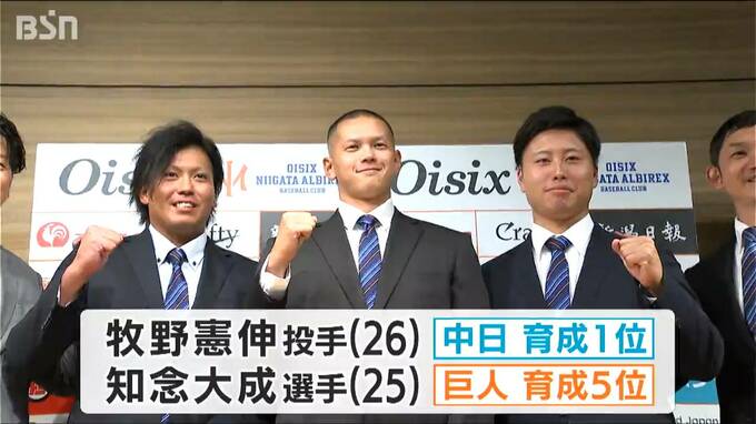 オイシックスからはこのほか、牧野憲伸投手(26)が中日ドラゴンズから、知念大成選手(25)が読売ジャイアンツから、それぞれ育成枠で指名を受けました。
