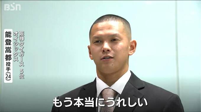 阪神タイガースから5位で指名を受けたオイシックスの能登嵩都投手(24)は今季イースタン・リーグで12勝を挙げて最多勝投手となるなど、タイトル4冠を獲得していました。