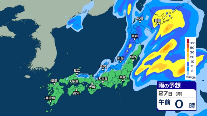 太平洋沿岸や前線、低気圧周辺では雷を伴う激しい雨の所も 西~東日本は26日にかけて 北日本では26~27日は土砂災害などに注意【3時間ごとの雨シミュレーション・25日正午更新】