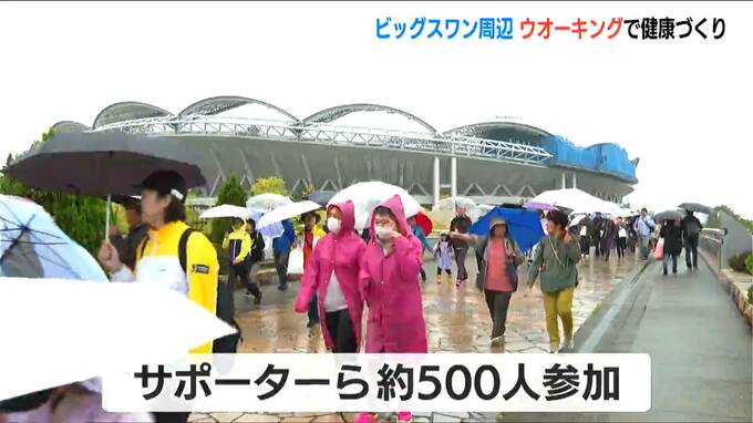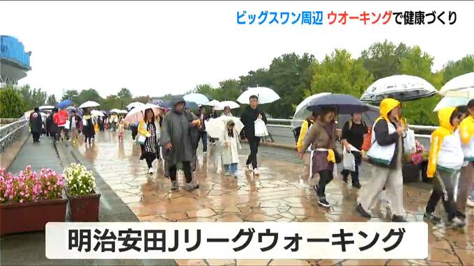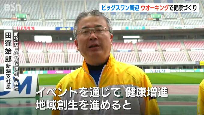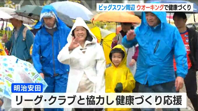サッカーJ1 アルビレックス新潟の試合が行われたデンカビッグスワン周辺では26日、ウォーキングイベントが開かれサポーターら500人が汗を流しました。