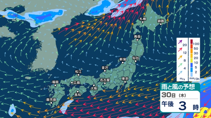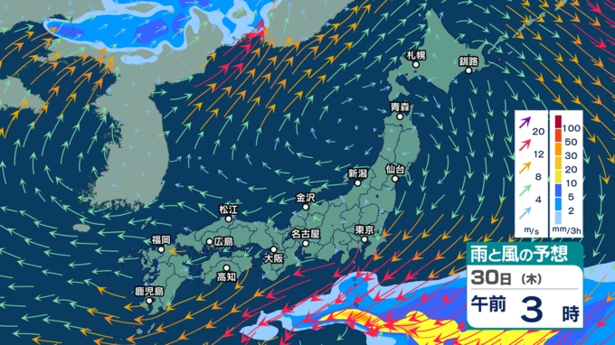 3. 【大雨情報】31日~11月1日は西日本や東日本、北日本で荒れた天気に 警報級大雨の恐れも 28日は強い寒気が流入し北海道では暴風警戒【3時間ごとの雨風シミュレーション・28日正午更新】
