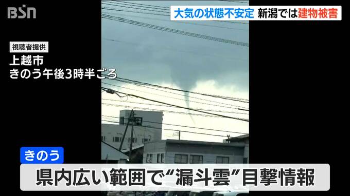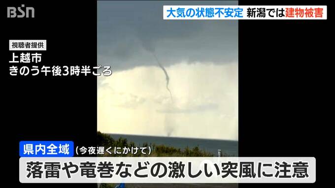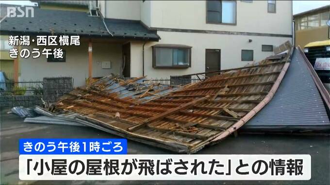 新潟県内は28日、大気の非常に不安定な状態が続いていて、新潟市では27日、小屋の屋根が飛ばされるなど突風が原因とみられる建物被害が相次ぎました。