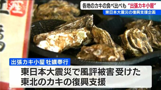 東日本大震災で風評被害を受けた東北のカキを、多くの人に食べてもらいたいと始まった復興支援企画で、今も全国各地で開かれています。