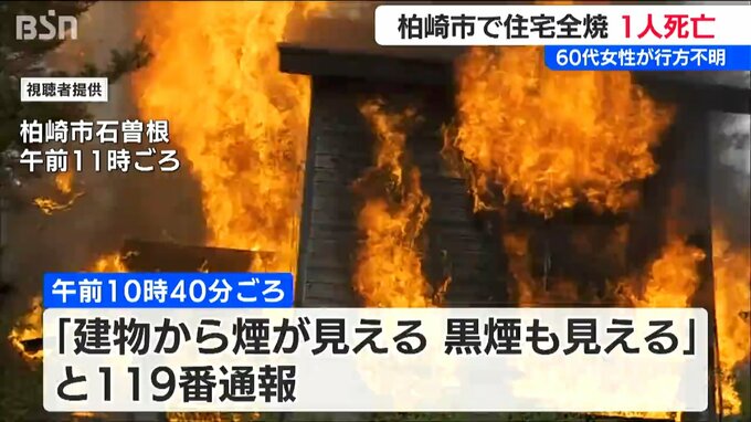 火事があったのは柏崎市 石曽根で、午前10時40分ごろ近所の人から「建物から煙が見える、黒煙も見える」と消防に通報がありました。