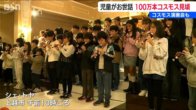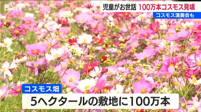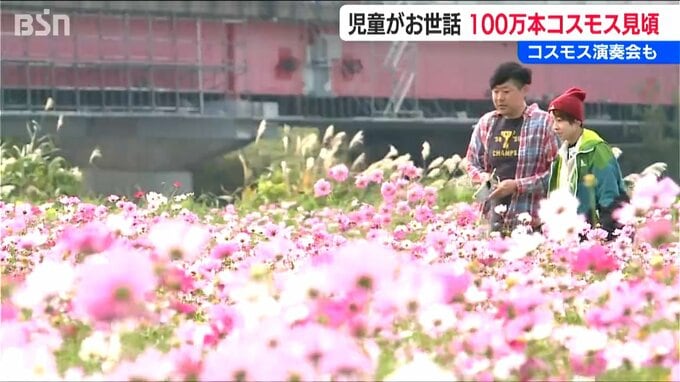 新潟県 上越市の関川の河川敷で100万本のコスモスがいま見ごろを迎えています。