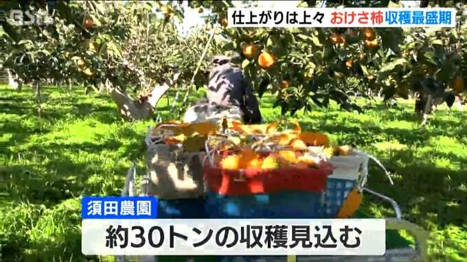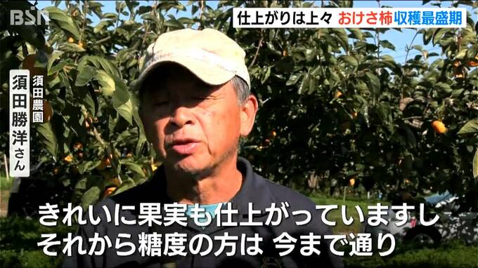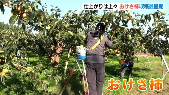 農家が収穫していたのは、まろやかな甘味が特徴の「おけさ柿」。