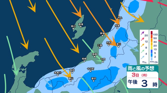 【大雨情報】3連休は新潟県内で雨風が強まる見込み 31日夕方~11月1日夕方にかけて24時間100ミリの大雨の恐れも【3時間ごとの雨風シミュレーション・30日午後9時更新】 2025年10月30日(木) 21:02