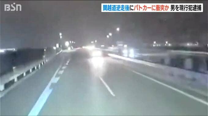 新潟県湯沢町の関越道上り線で31日、車運搬用のキャリアカーを運転中に逆走し静止しようとしたパトカーに衝突させたとして、さいたま市に住む48歳の会社員の男が逮捕されました。