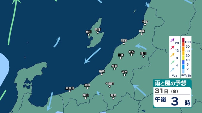 3. 【大雨情報】雷を伴い“バケツをひっくり返したような”激しい雨か 新潟県はあす1日朝から2日にかけて土砂災害などに注意・警戒を【3時間ごとの雨風シミュレーション・31日正午更新】