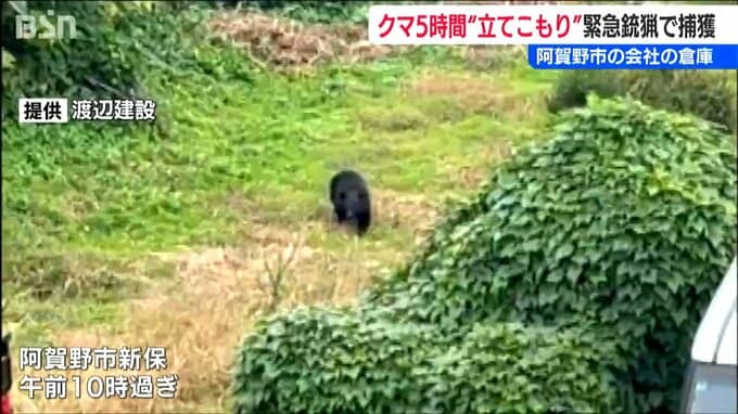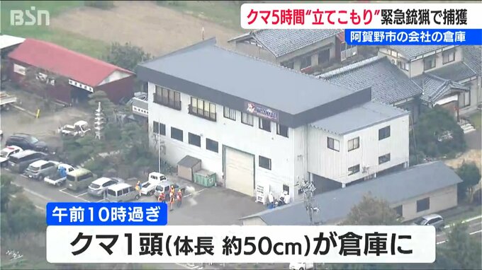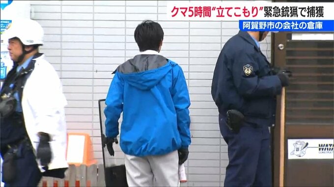 「クマはシャッターが開いていて、そこから入ったということで、倉庫の中で立てこもっているということです。中で警察がクマを見失わないように監視しているということです」