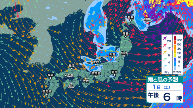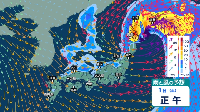 急速発達する低気圧の影響で北日本では暴風などに警戒 2~3日は強い寒気流入で北日本~西日本の日本海側中心に天気急変か【3時間ごとの雨風シミュレーション・1日午前11時30分更新】