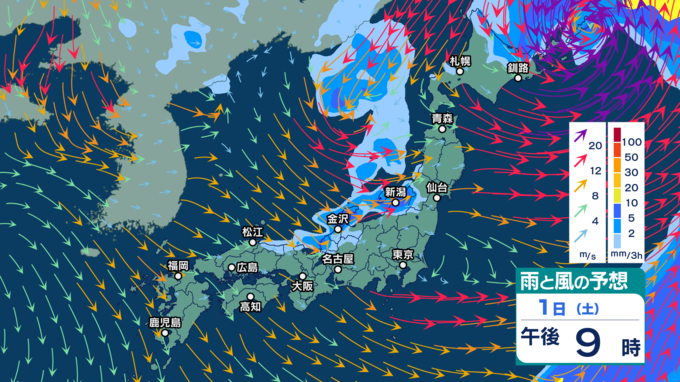 3. 急速発達する低気圧の影響で北日本では暴風などに警戒 2~3日は強い寒気流入で北日本~西日本の日本海側中心に天気急変か【3時間ごとの雨風シミュレーション・1日午前11時30分更新】
