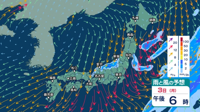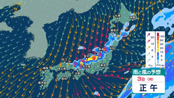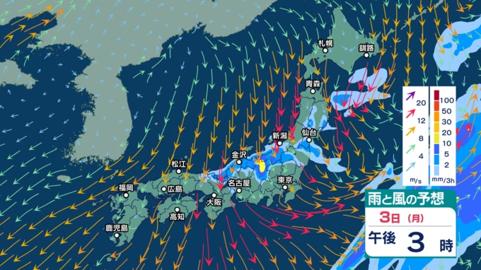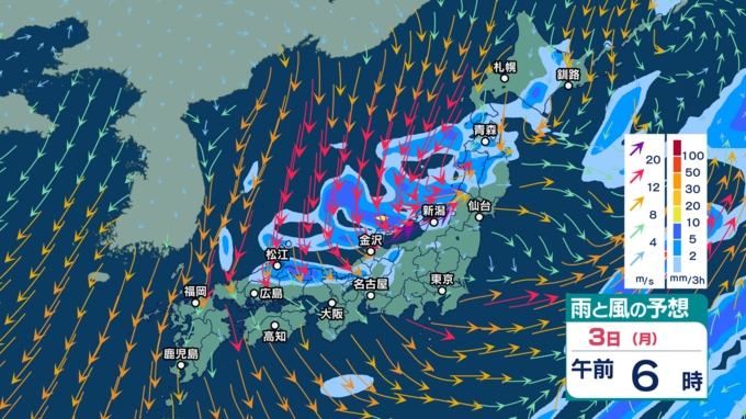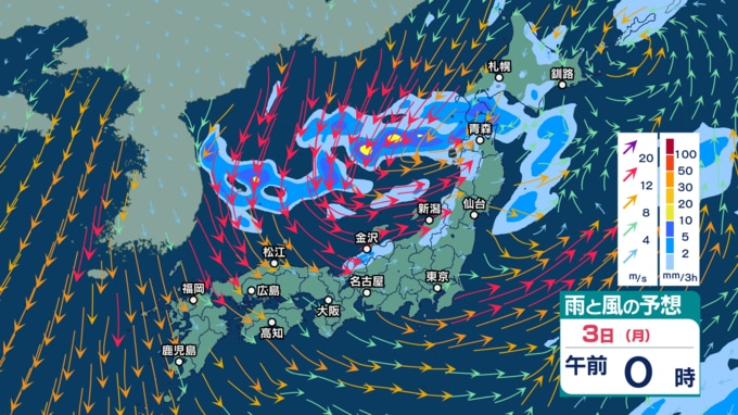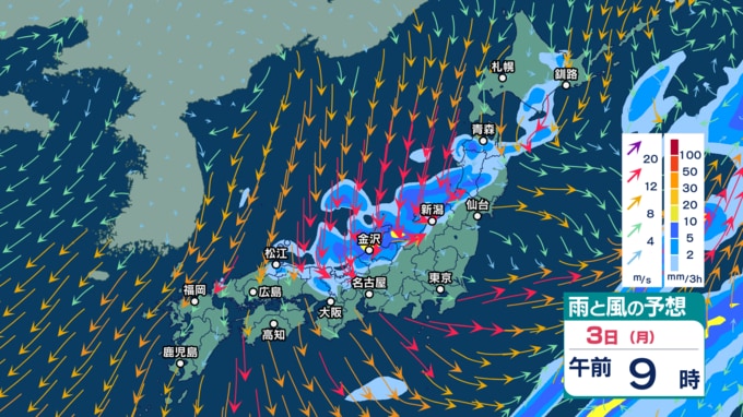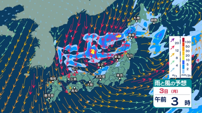 急速発達する低気圧の影響で北日本では暴風などに警戒 2~3日は強い寒気流入で北日本~西日本の日本海側中心に天気急変か【3時間ごとの雨風シミュレーション・1日午前11時30分更新】 2025年11月1日(土) 11:30