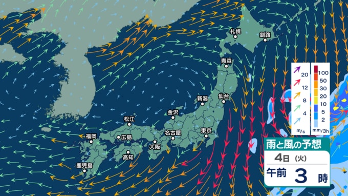 急速発達する低気圧の影響で北日本では暴風などに警戒 2~3日は強い寒気流入で北日本~西日本の日本海側中心に天気急変か【3時間ごとの雨風シミュレーション・1日午前11時30分更新】 2025年11月1日(土) 11:30