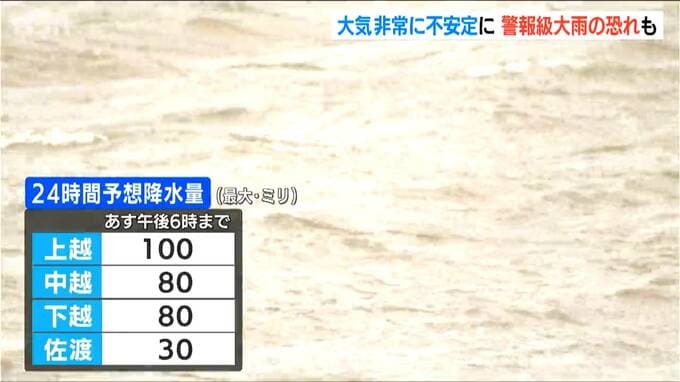 新潟県内は3日にかけて大気の状態が非常に不安定になる見込みで警報級の大雨となる恐れもあります。