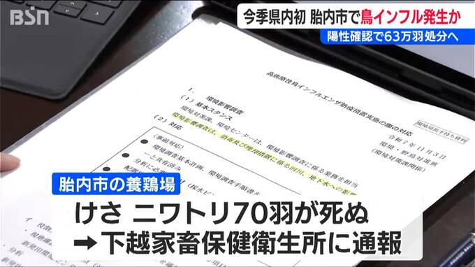 新潟県胎内市の養鶏場で、高病原性鳥インフルエンザの発生が疑われる事例が発生しました。確認されれば今シーズン県内初、全国の養鶏場では3例目です。