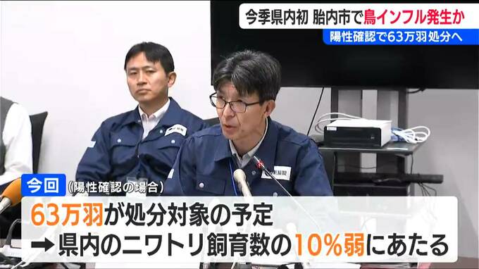 この胎内市の養鶏場では2022年度にも鳥インフルエンザが発生し、68万羽を殺処分しています。今回、発生が確認された場合は63万羽が殺処分となる予定で、その数は県内で飼育されているニワトリの10パーセント弱にあたるということです。