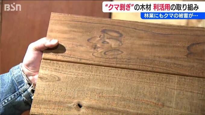 関川村森林組合と大川屋製材所とが手を組み、あえてクマ被害を“明示”して行う、新たな利活用の方法です。