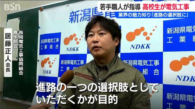 電気工事業界に興味を持ってもらおうと、新潟県長岡市の県立長岡工業高校で若手職人が出前授業を開きました。