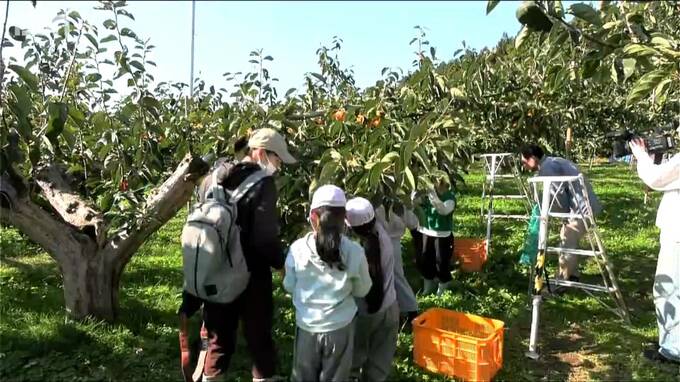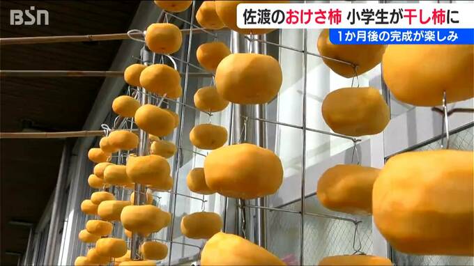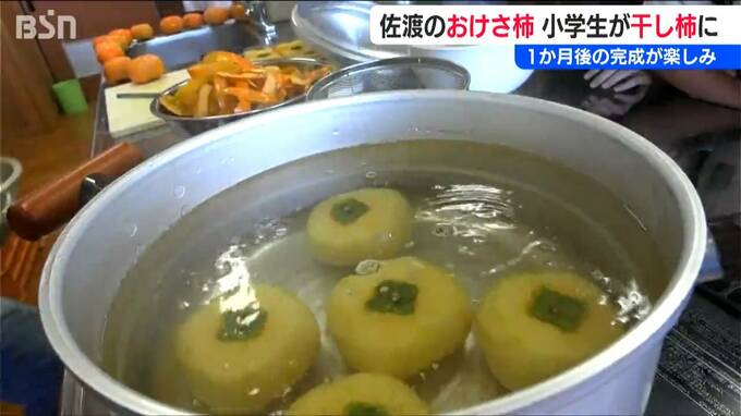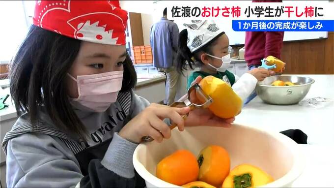 新潟県佐渡市立新穂小学校の3年生たちが5日、地元特産『おけさ柿』の“干し柿づくり”に挑戦しました。