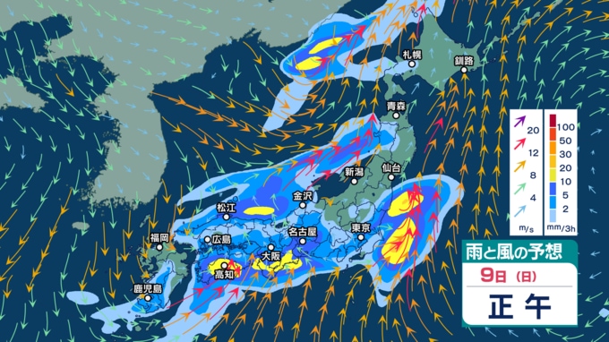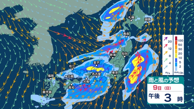 きょう9日は西日本~北日本で“どしゃ降り”の雨となる所も 北日本と東日本ではあす…