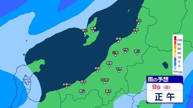 強い寒気の影響で大気の状態が不安定 新潟県内は“どしゃ降り”となり警報級大雨の恐れも【3時間ごとの雨シミュレーション・9日午前11時更新】