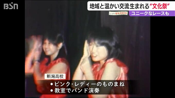 昭和53年の新潟高校では当時流行していたピンク・レディーのものまねや、ライブハウスさながらのバンド演奏など、生徒の情熱があふれていました。