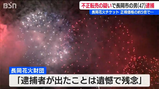 長岡花火財団は「逮捕者が出たことは非常に遺憾であり残念」とコメントしたうえで、不正転売については捜査機関と協力し厳正に対処していくとしています。
