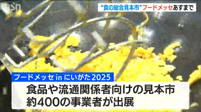 食をテーマにした見本市、「フードメッセ」が新潟市で開催されおよそ400の出展者が調理機器や加工食品などをPRしています。