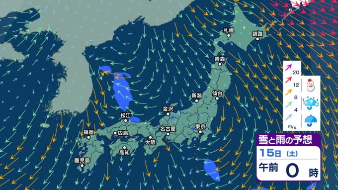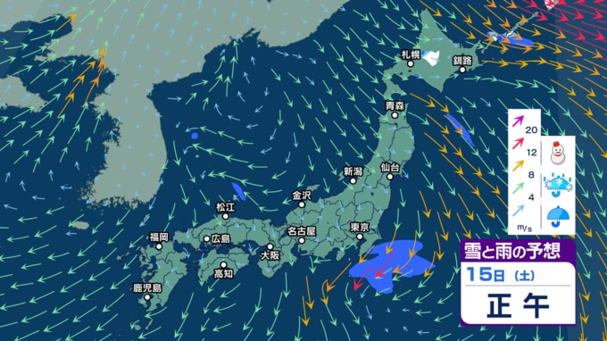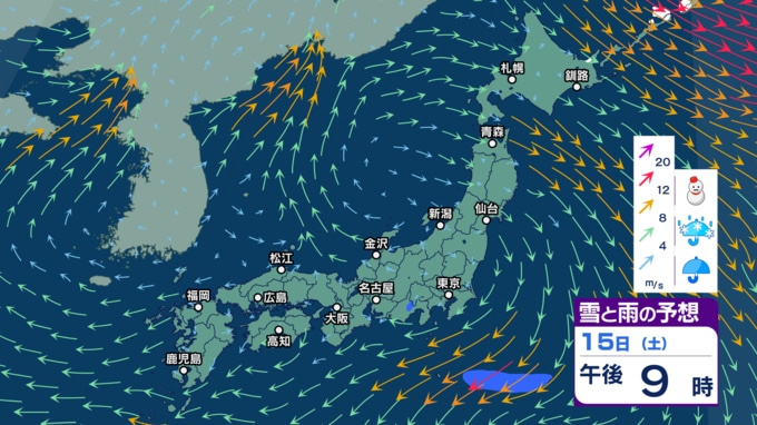 土日は晴れる所も週明けは北日本を中心に荒れた天気か 強い寒気が流れ込み日本海側では山沿いを中心に雪に【3時間ごとの雨シミュレーション・14日正午更新】