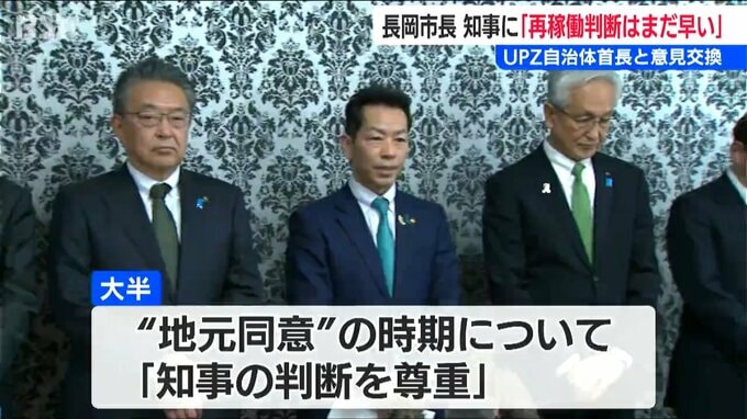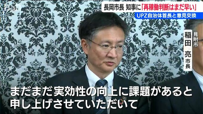 柏崎刈羽原発の視察を終えた花角知事はその後、長岡市を訪れ、長岡市や小千谷市など原発から30キロ圏内に位置する7つの自治体の首長と意見交換に臨みました。
