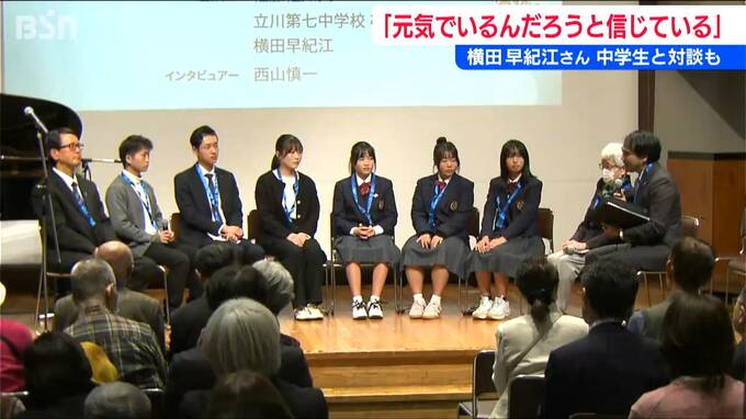 早紀江さんは活動に感謝を述べ、中学生たちの姿にめぐみさんの姿を重ねていました。