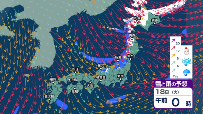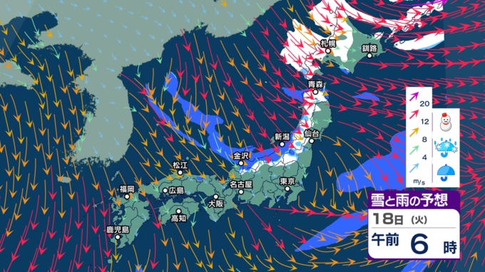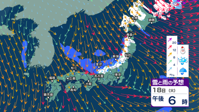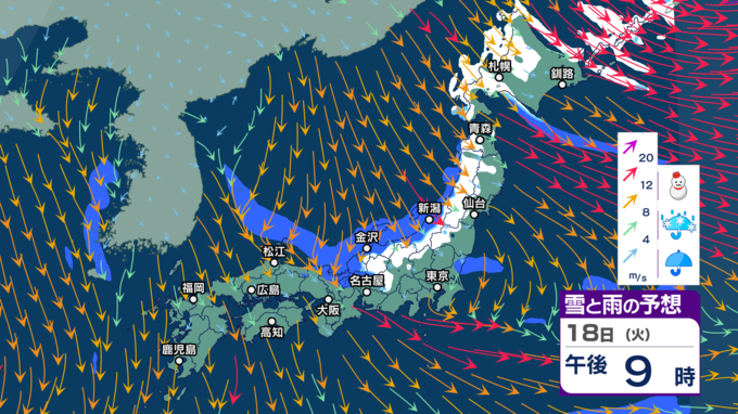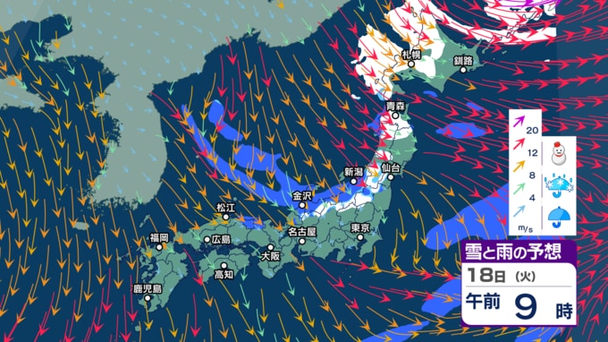 あす17日は北日本で大荒れの天気か その後は19日にかけて日本海側で大雨や大雪に? 中国地方でも山地を中心に雪が降り積雪の可能性も【3時間ごとの雨雪と風のシミュレーション・16日午後9時更新】