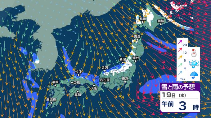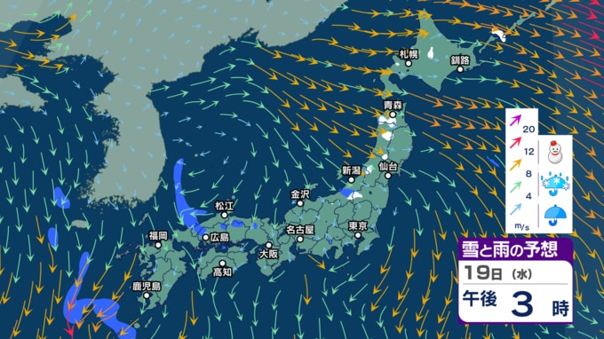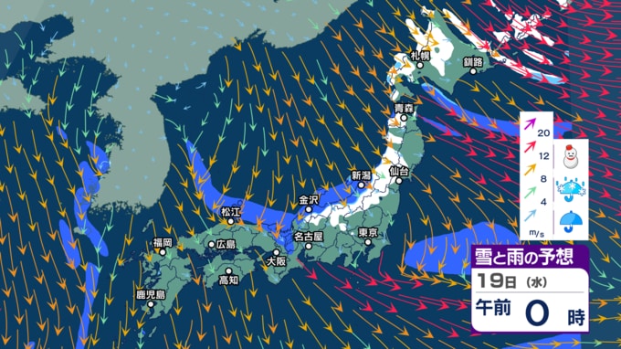 あす17日は北日本で大荒れの天気か その後は19日にかけて日本海側で大雨や大雪に? 中国地方でも山地を中心に雪が降り積雪の可能性も【3時間ごとの雨雪と風のシミュレーション・16日午後9時更新】