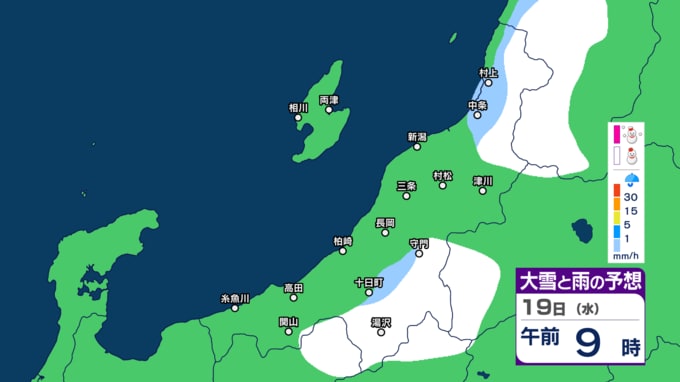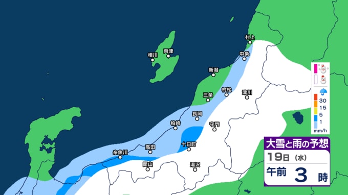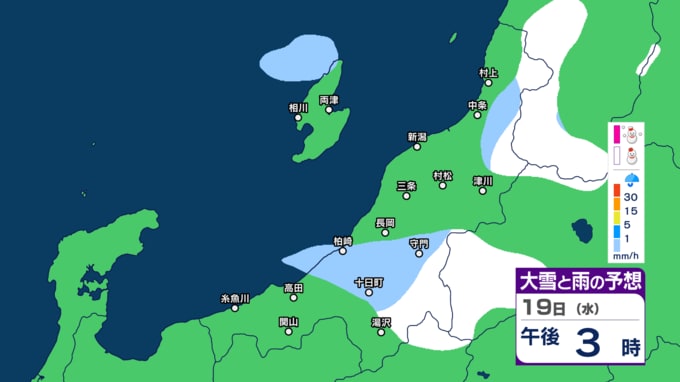 3. 【気象情報】近づく冬の足音 冬型の気圧配置で新潟県内は18~19日 山沿い中心に降雪か 交通障害などに注意【3時間ごとの雨と雪のシミュレーション・17日正午更新】