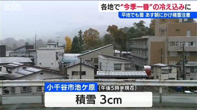 消防に寄りますと、小千谷市 池ケ原で3センチの積雪を観測しています。