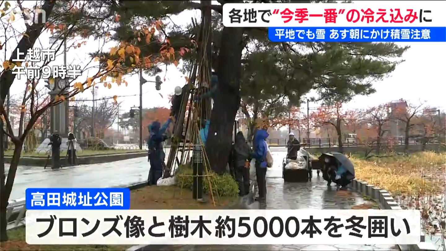 こうした中、上越市の高田城址公園ではブロンズ像の冬囲いが始まりました。